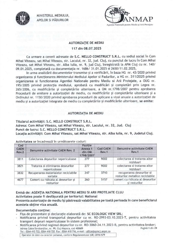 Adresa de email: mediu@nello-construct.ro